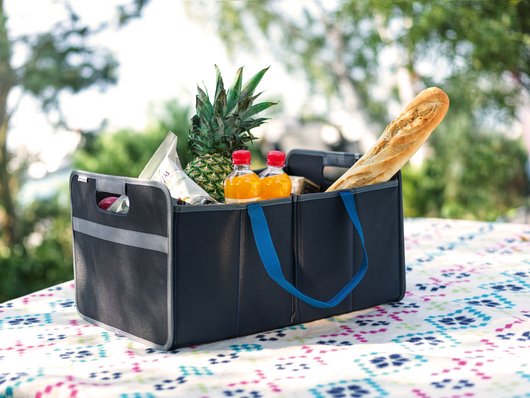 Ідеально підходить для швидкого упорядкування та зберігання будь-яких речей. З практичними ременями для перенесення та ручками для зручного транспортування поза автомобілем. Бренд з логотипом Hyundai.