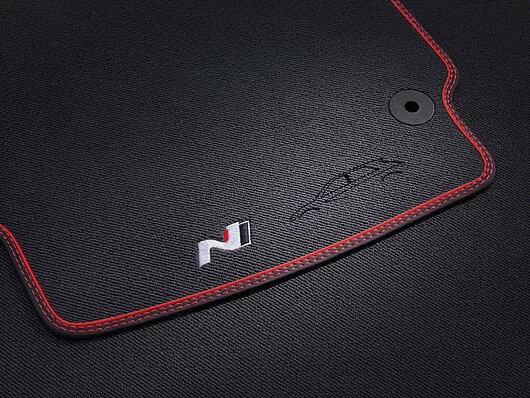 Високоякісний захист підлоги преміум-класу з червоною подвійною строчкою. Ці килимки з ворсом забезпечують захист підлоги та стиль, завдяки якому інтер’єр виглядає чистим і новим. Вони виготовлені спеціально для ідеального розміщення в просторі для ніг і утримуються на місці стандартними точками кріплення та протиковзкою підкладкою. На килимках переднього ряду вишито логотип N і силует автомобіля. Набір із 3 шт.