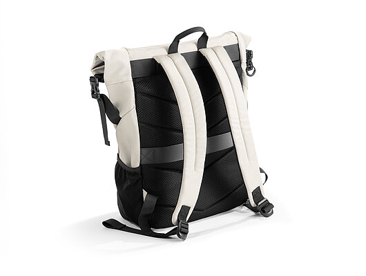 Стиль та функціональність. Цей шикарний рюкзак виготовлений з тонкого поліамідного твила, м'який, легкий і приємний на дотик. М'яка система перенесення, стьобана спинка та практична ручка полегшують перенесення, а петля для перенесення дозволяє зняти навантаження з рук. Крім спортивного міського дизайну, він пропонує безліч функціональних особливостей: легко чиститься, контрастні сітчасті кишені, велика передня кишеня та пояс із трьома функціональними петлями.